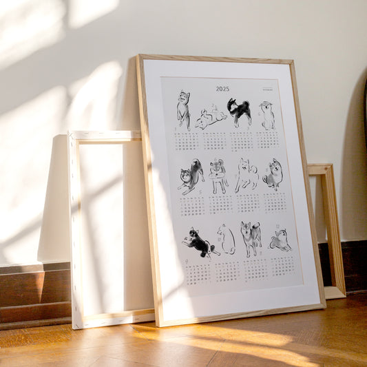 2025 Shiba Inu Hand-drawn Calendar, Sumi-e Ink Wall Art New Years Planner Zen Good Luck Dog Pet Lovers Jindo Appointment Yearly
