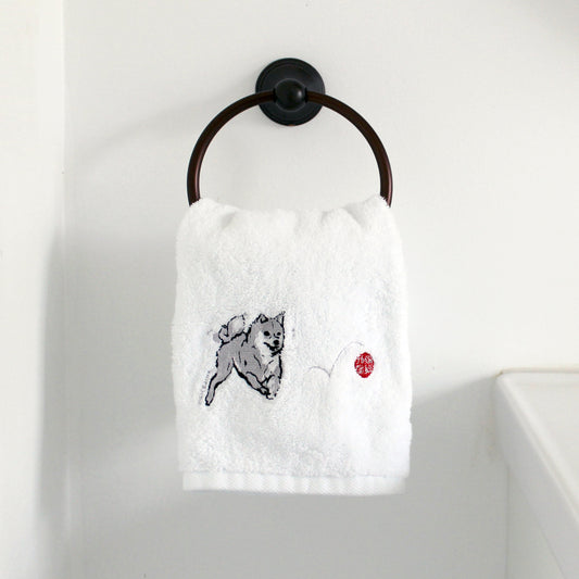 Shiba Inu with Red Ball Embroidered Hand Towel