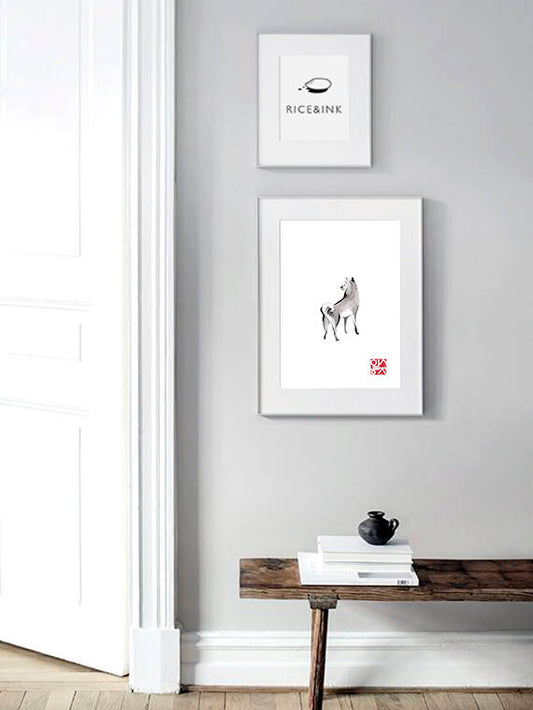 Shiba Inu and Little Chick Sumi Ink Art Print Poster