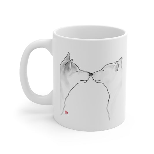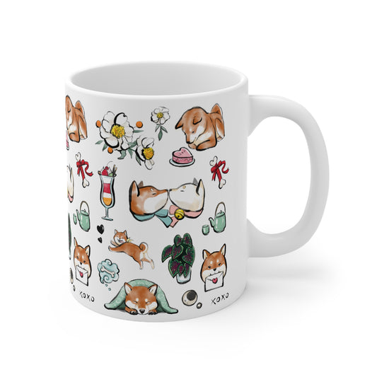 Love Shiba Inu Couple Mug | Sumi-e Ink Gift Painting Japanese Cute Dog Animal Illustration Tea Coffee Birthday