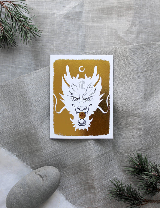 Year of the Dragon Gold Moon Zodiac Greeting Card