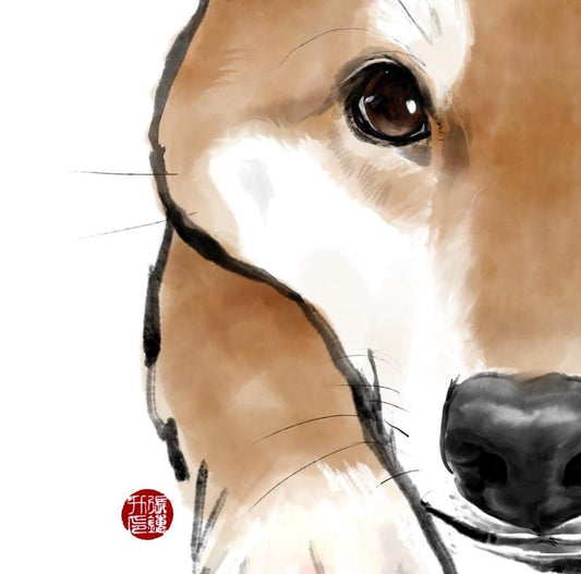 Mochi Cheeks Shiba Inu Greeting Card | Sumi-e Ink Painting Pet illustration Wabi Sabi Asian Brush Zen theme Dog Toy lover Friendship