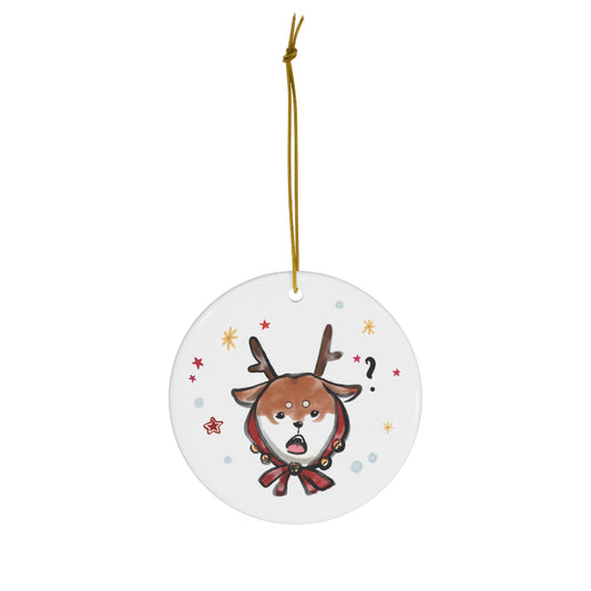 Rudolph Shiba Inu in Scarf Ceramic Ornament | Christmas Tree Deco Holidays Dog Pet Lovers Gift Cute Snow Jingle Bell Star