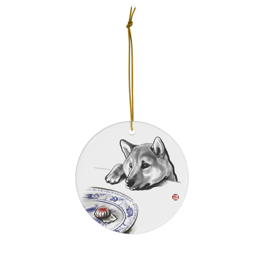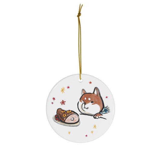 Shiba Inu Treat Ham Ceramic Ornament | Christmas Tree Deco Holidays Dog Pet Lovers Gift Cute Snow Jingle Bell Star