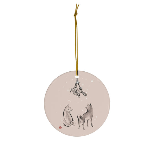 Underneath the Mistletoe Shiba Inu Ceramic Ornament | Christmas Tree Deco Holidays Dog Pet Lovers Gift Cute Snow Jingle Bell Star