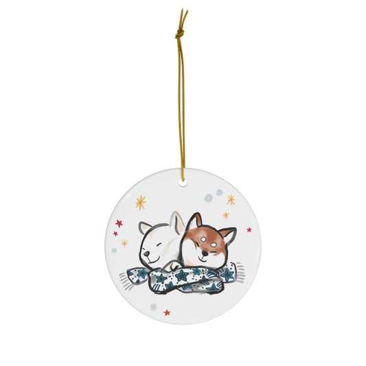 Two Shiba Inu in Scarf Ceramic Ornament | Christmas Tree Deco Holidays Dog Pet Lovers Gift Cute Snow