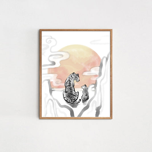 Sunrise Shiba Tiger Art Print Poster | Sumi Ink