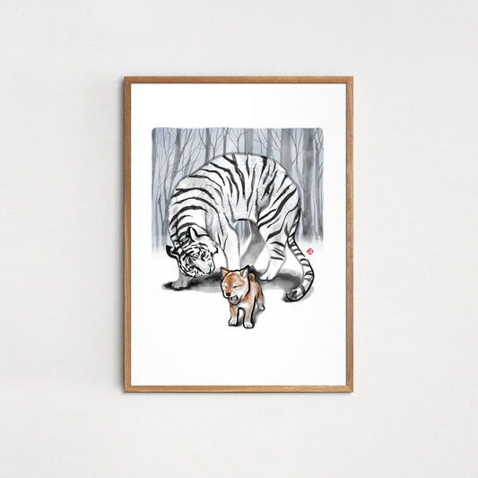 Shiba Puppy Roar to Tiger Art Print Poster | Sumi Ink