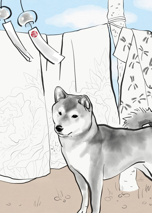 Shiba Inu, Wind Bell, Hanging Silk Kimono Greeting Card