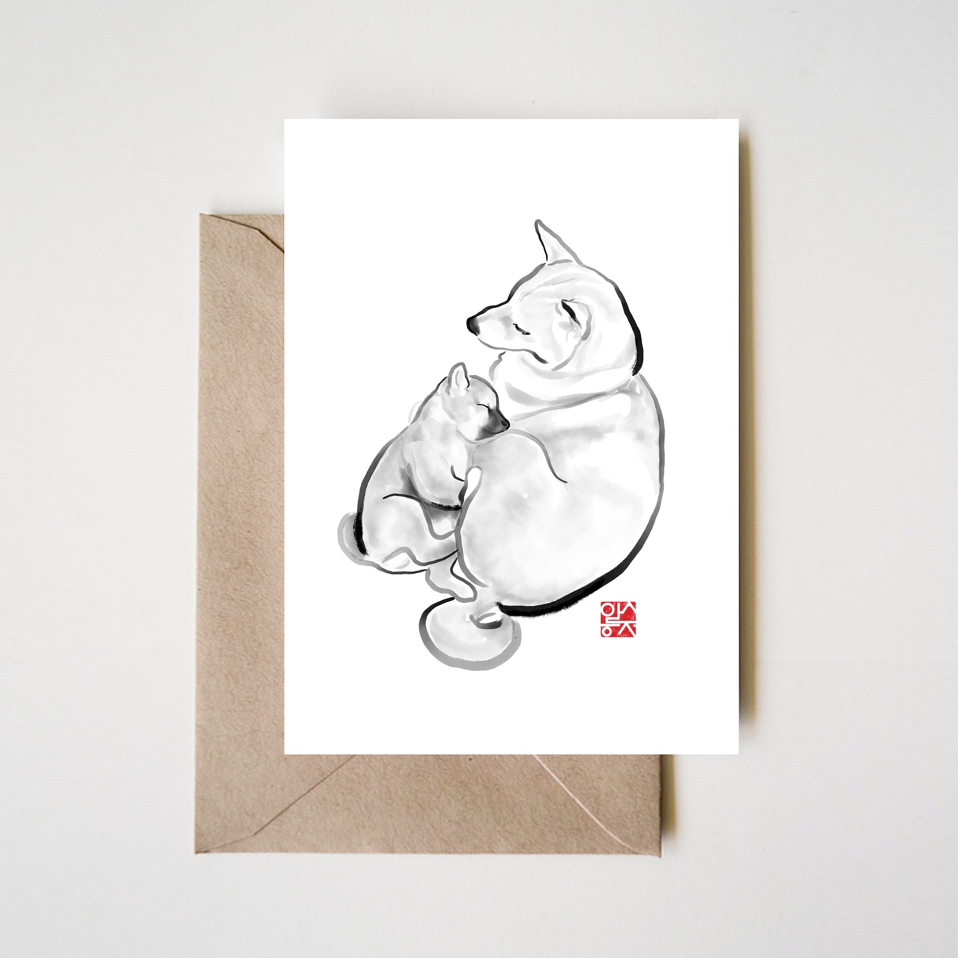 a nice gift for mother's day, dog lovers, Sumi-e art and cute illustration fans,