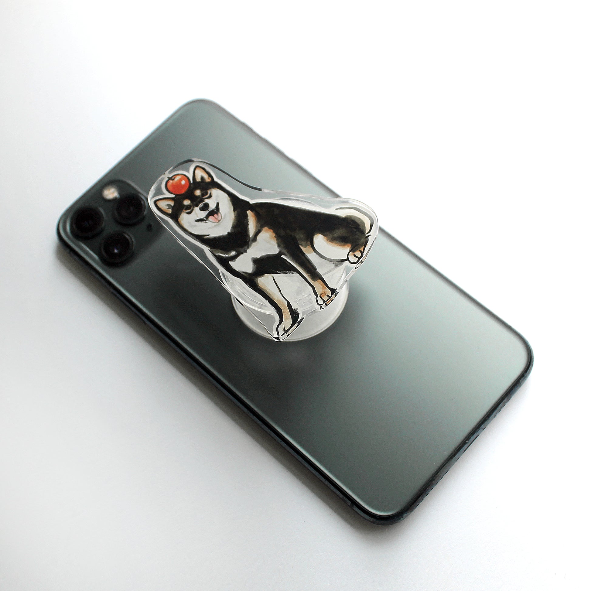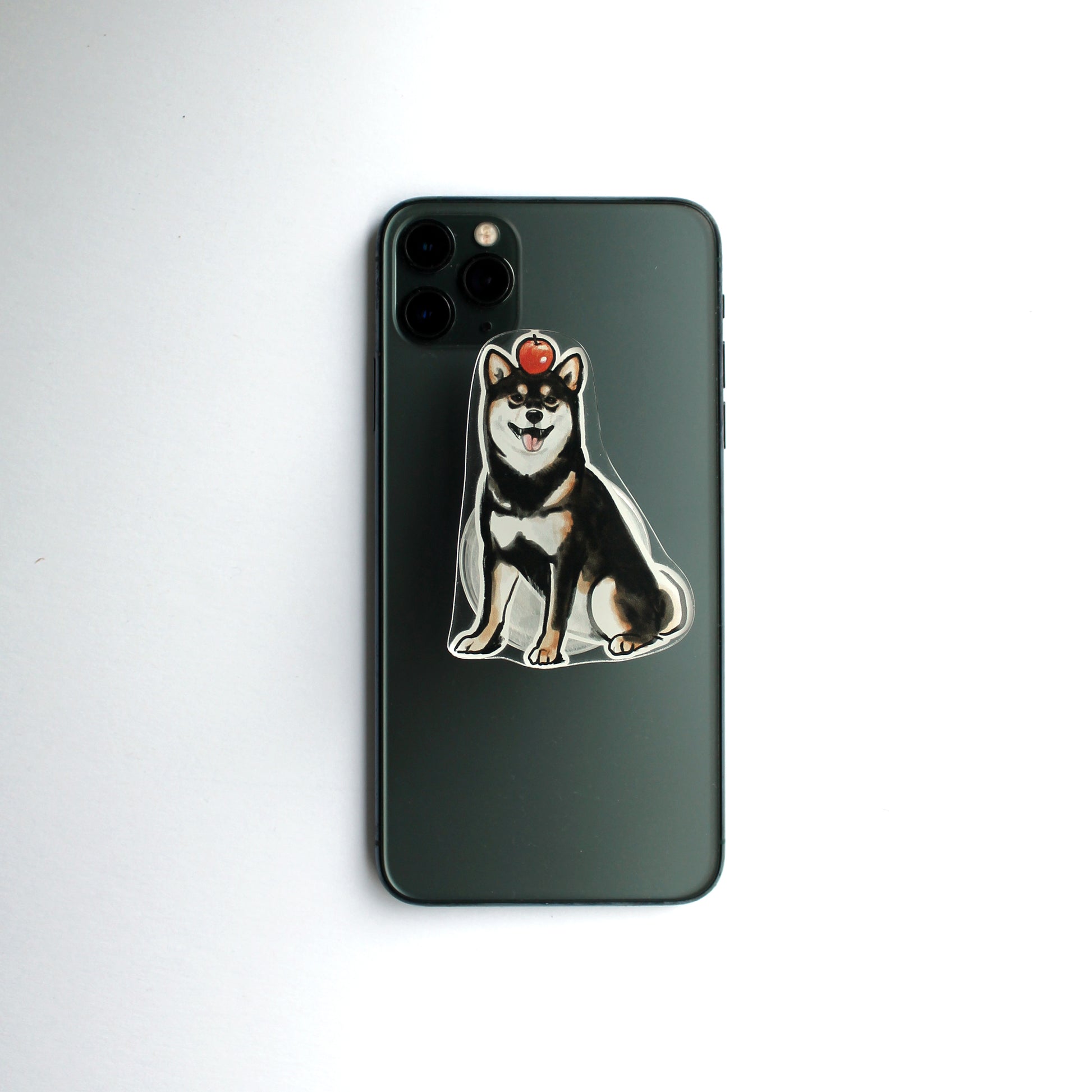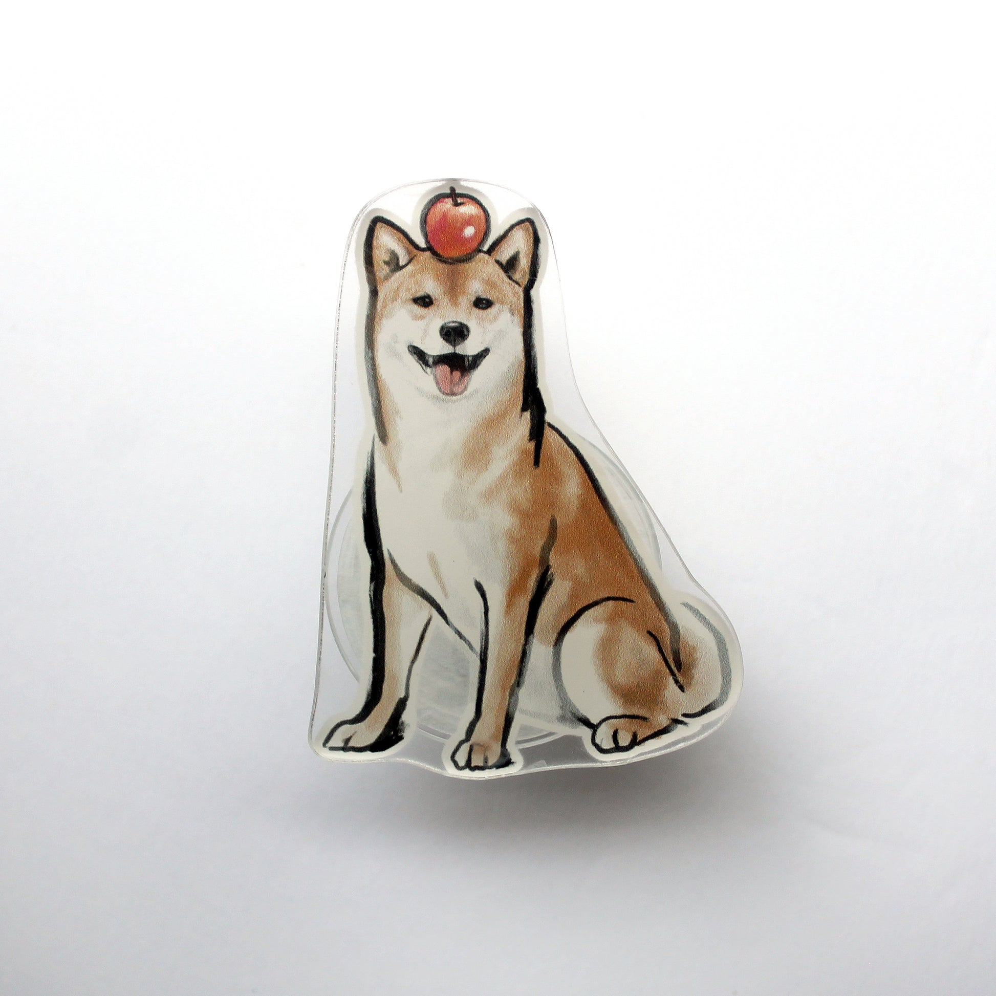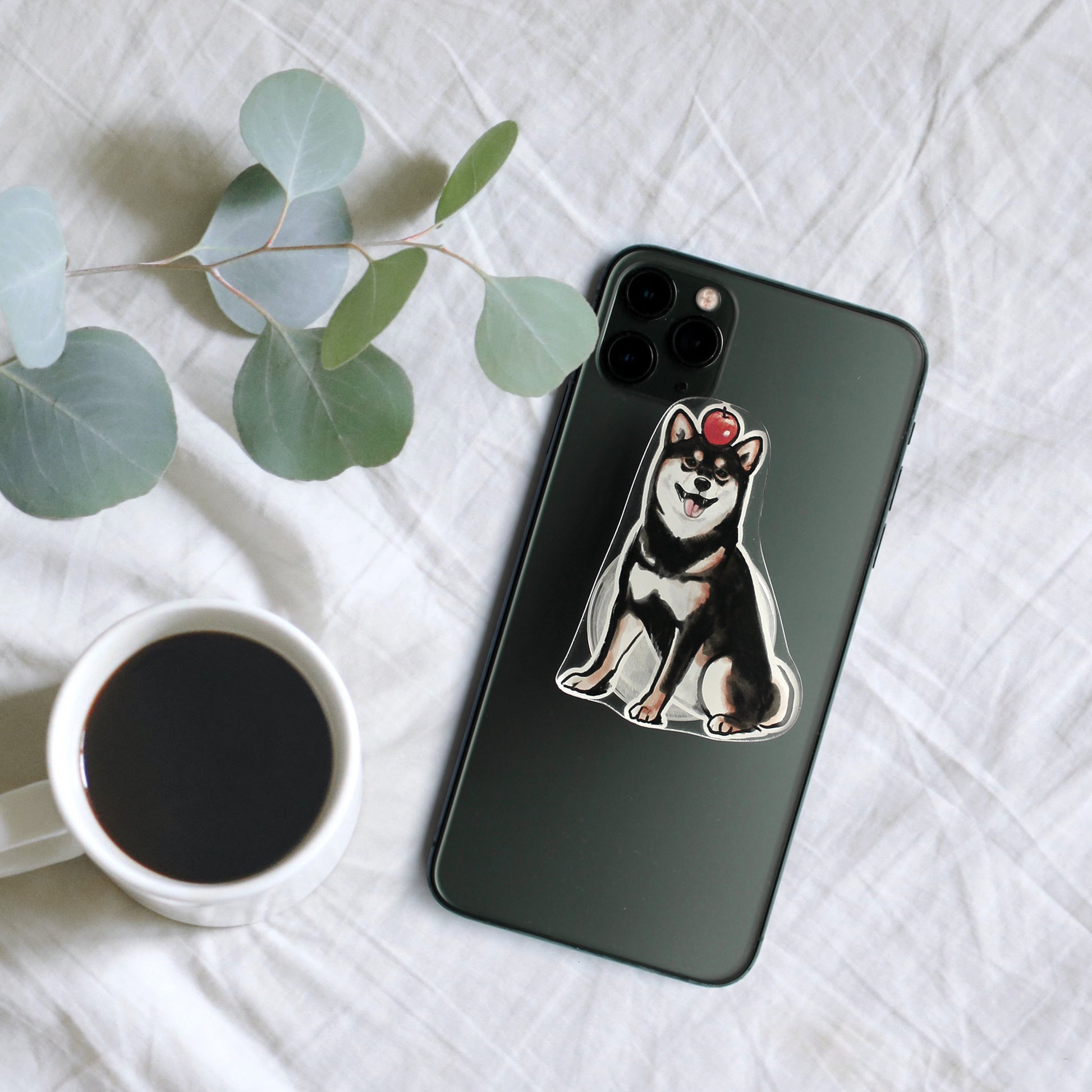 Acrylic Shiba Inu & Apple phone grip works for any type of cell phones.