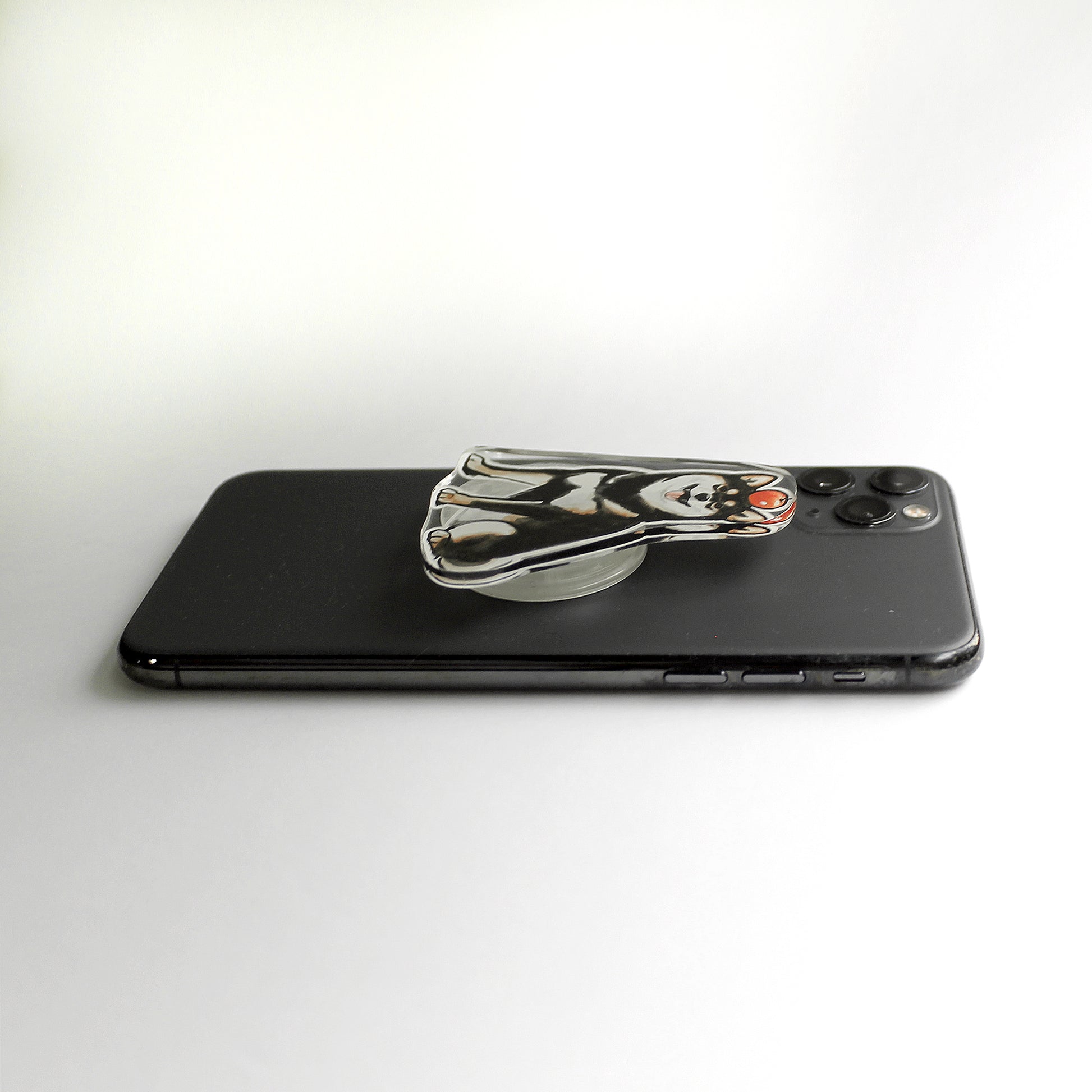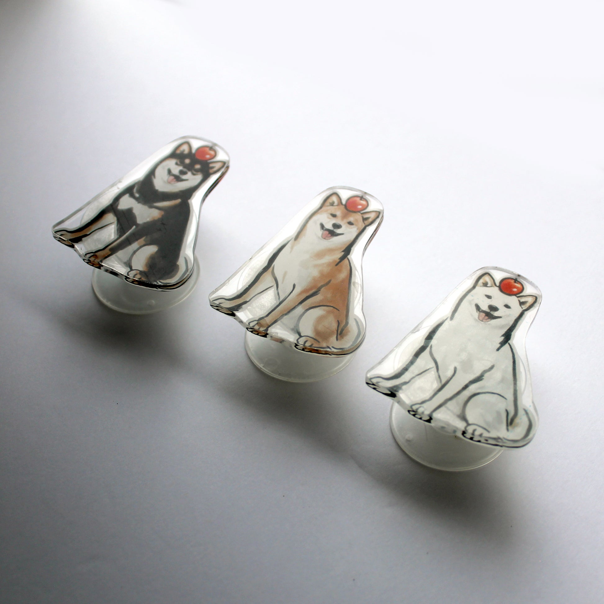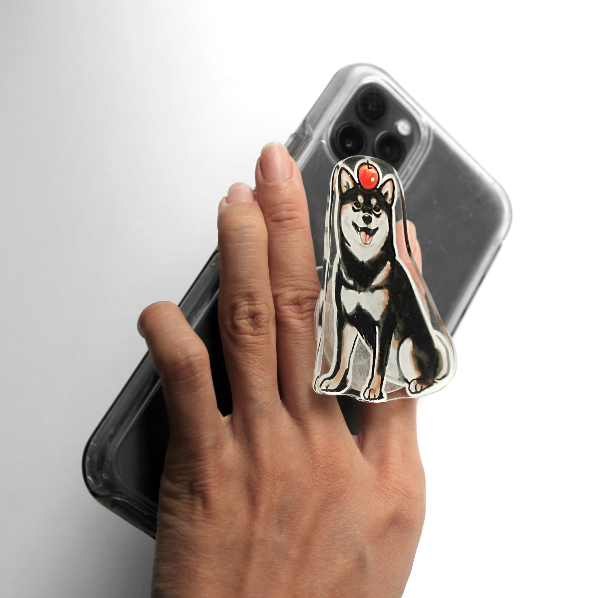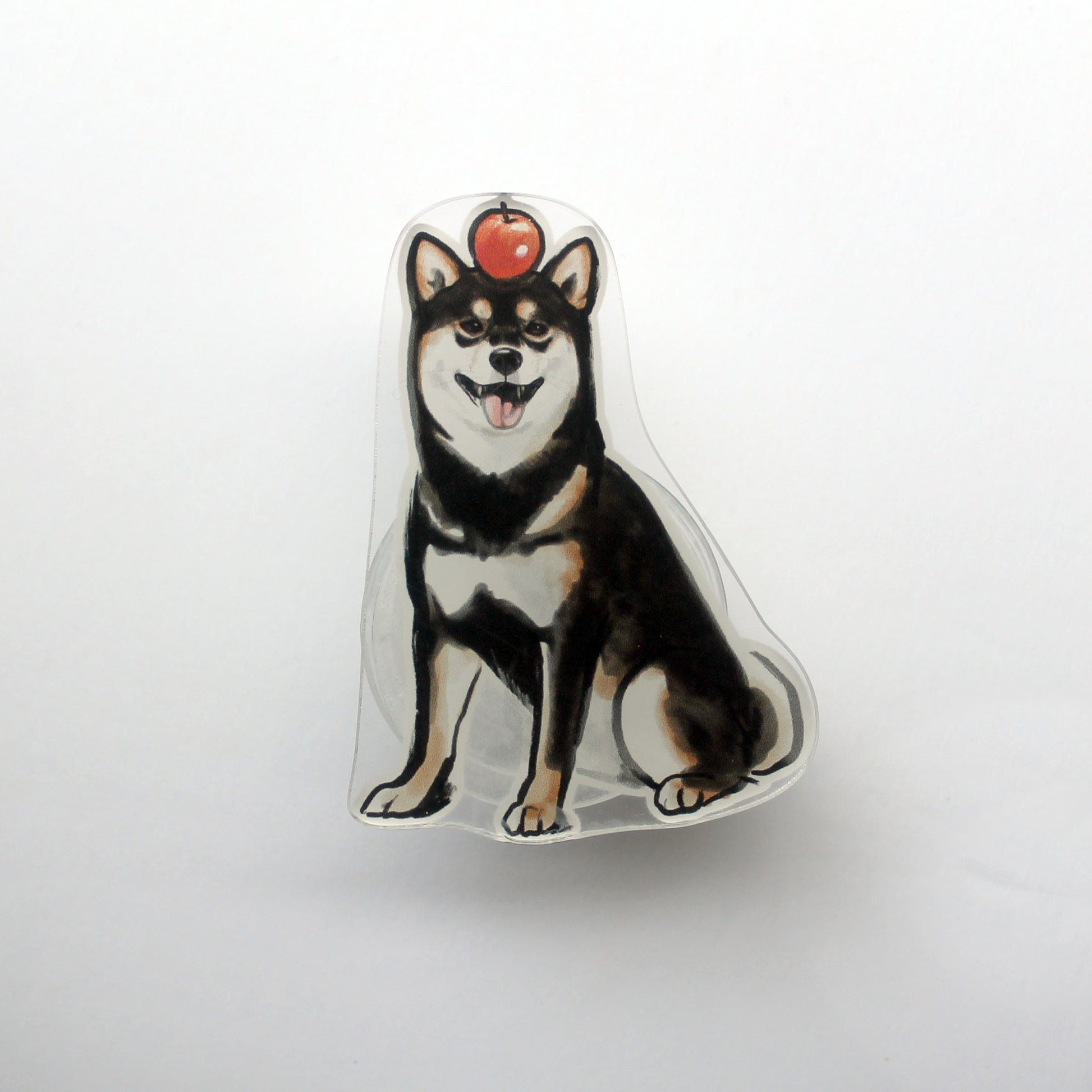 Acrylic Shiba Inu & Apple phone grip works for any type of cell phones.
