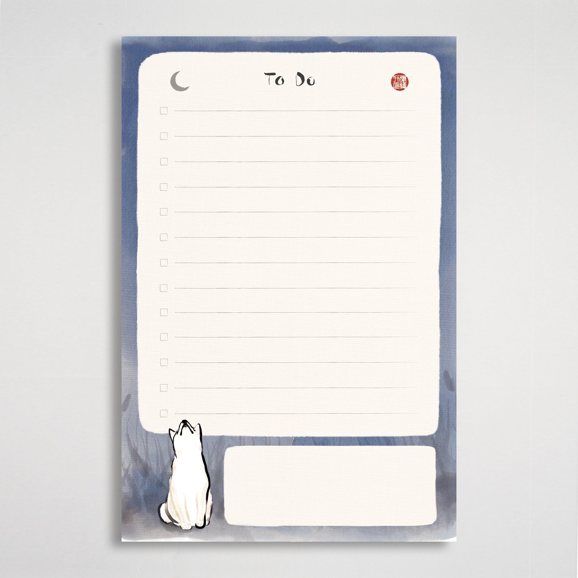 Shiba To-Do List Notepad – 50 Sheets, Minimal Ink Art Stationery with Moon Design