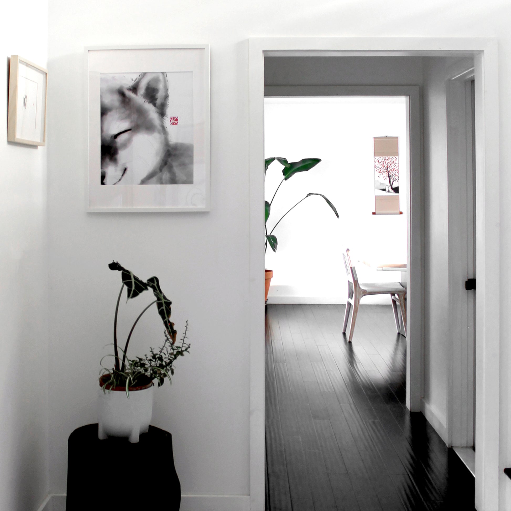 Smiling Shiba Sumi Ink Glicee Art Print with Solid Wood Frame 16*20